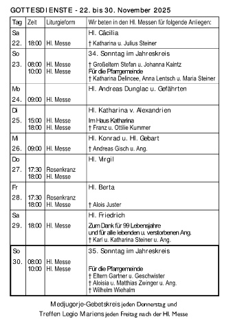 GOTTESDIENSTE - 22. bis 30. November 2025