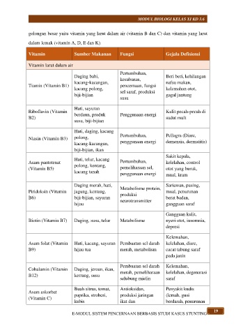 golongan besar yaitu vitamin yang larut dalam air (vitamin B dan C) dan vitamin yang larut