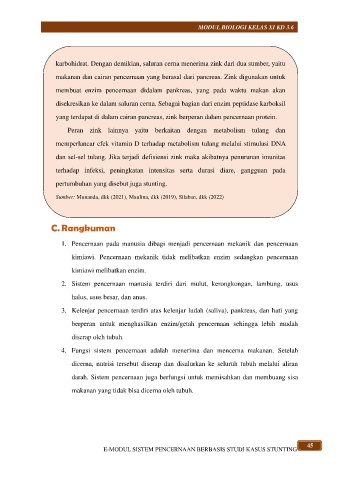 makanan dan cairan pencernaan yang berasal dari pancreas. Zink digunakan untuk