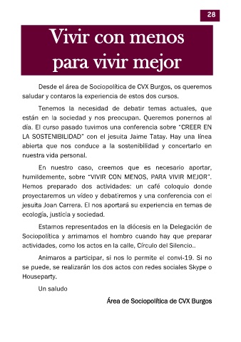 Desde el área de Sociopolítica de CVX Burgos, os queremos