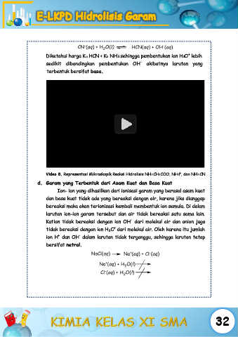 Video 8. Representasi Mikroskopik Reaksi Hidrolisis NH4CH3COO, NH4F, dan NH4CN.