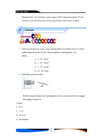 Muatan listrik 3 C melintasi medan magnet 0,06 T dengan kecepatan 25 m/s.