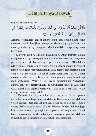 Artinya: Hendaklah ada di antara kamu segolongan orang yang
