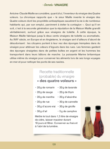 Recette traditionnelle (probable) du vinaigre « des quatre voleurs »