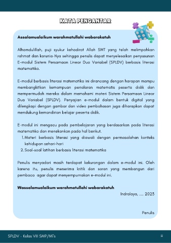 E-modul Sistem Persamaan Linear Dua Variabel (SPLDV) berbasis literasi