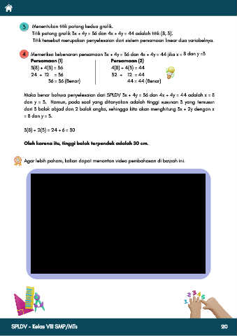 Memeriksa kebenaran persamaan 3x + 4y = 36 dan 4x + 4y = 44 jika x = 8 dan y =3
