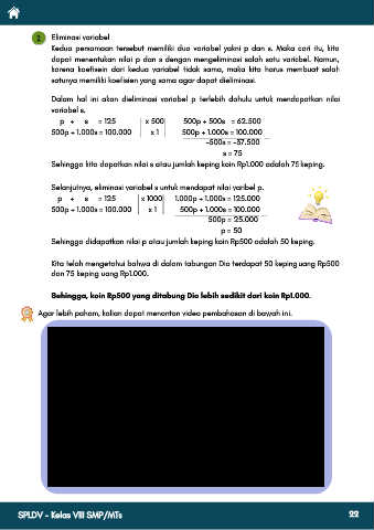 Sehingga kita dapatkan nilai s atau jumlah keping koin Rp1.000 adalah 75 keping.