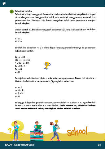 Substitusi artinya mengganti. Karena itu, pada metode substitusi penyelesaian dapat