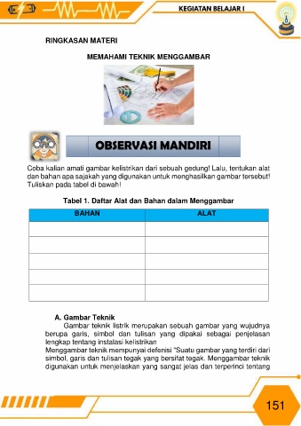 Tabel 1. Daftar Alat dan Bahan dalam Menggambar
