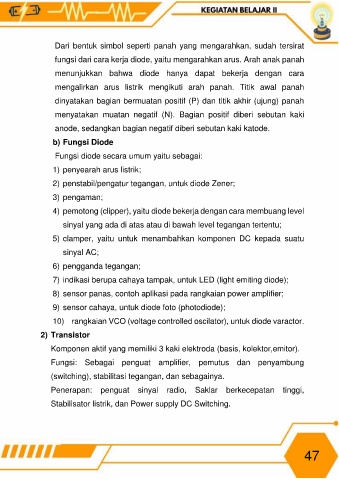 2) penstabil/pengatur tegangan, untuk diode Zener;