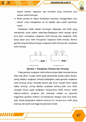 mengalir hanya pada rangkaian tertutup.Arus listrik muncul ketika
