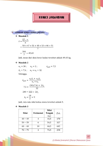 Jadi, mean dari data berat badan tersebut adalah 49,43 kg.