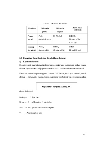 3.7 Kapasitas, Berat Jenis dan Kondisi Isian Baterai