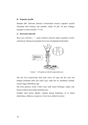 isian baterai. Sebagai alat pengukur berat jenis ini digunakan hydrometer.