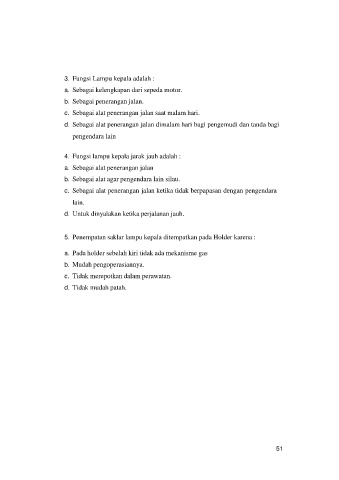 5. Penempatan saklar lampu kepala ditempatkan pada Holder karena :