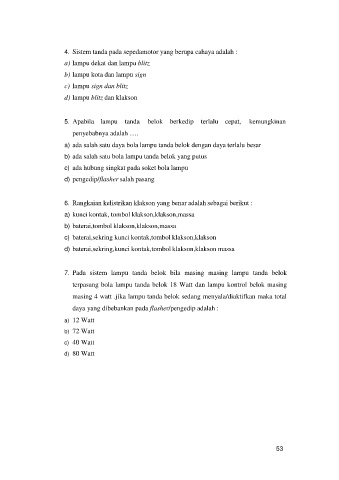 4. Sistem tanda pada sepedamotor yang berupa cahaya adalah :