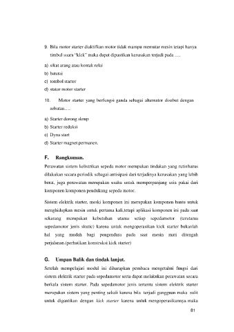 sistem elektrik starter pada sepedamotor serta dapat melakukan perawatan secara
