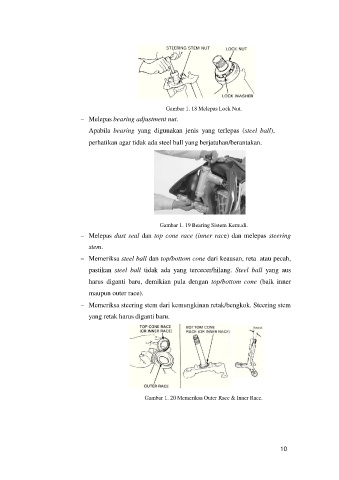 Melepas dust seal dan top cone race (inner race) dan melepas steering