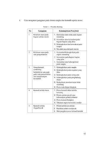 c. Cara mengatasi gangguan pada sistem rangka dan kemudi sepeda motor.