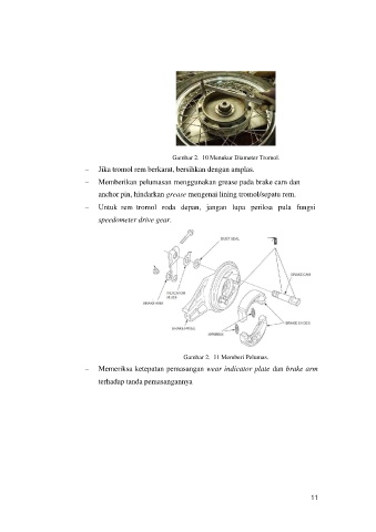 anchor pin, hindarkan grease mengenai lining tromol/sepatu rem.