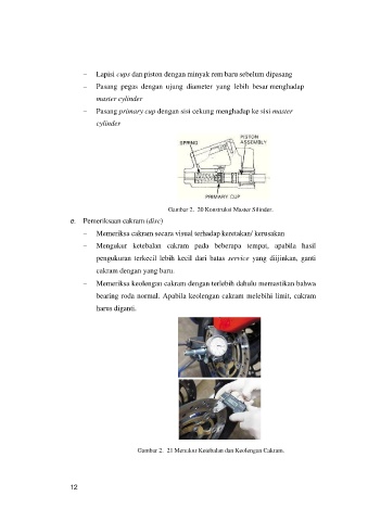 Lapisi cups dan piston dengan minyak rem baru sebelum dipasang