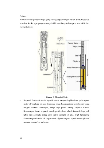 c. Suspensi Telescopic model up-side down, banyak diaplikasikan pada sepeda