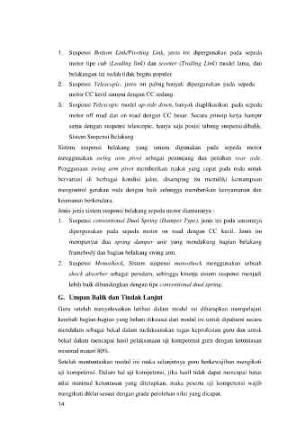 1. Suspensi Bottom Link/Pivoting Link, jenis ini dipergunakan pada sepeda