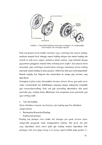 Gambar 5. 9 Konstruksi kopling otomatis tipe centripugal, (A) centripugal tipe