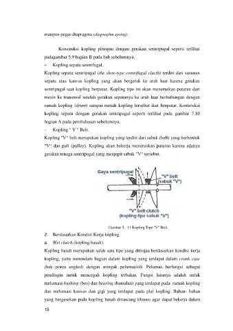 "V“ dan puli (pulley). Kopling akan bekerja meneruskan putaran karena adanya