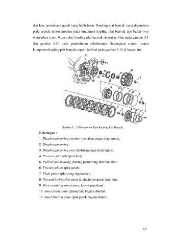 komponen kopling plat banyak seperti terlihat pada gambar 5.12 di bawah ini.