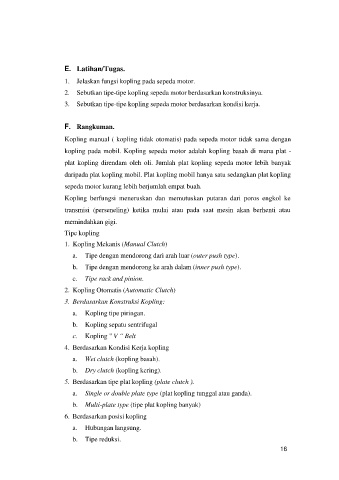 2. Sebutkan tipe-tipe kopling sepeda motor berdasarkan konstruksinya.