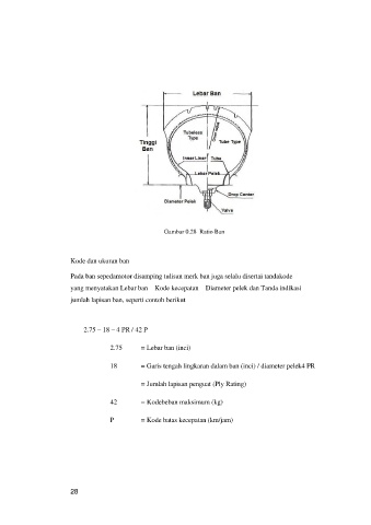 Pada ban sepedamotor disamping tulisan merk ban juga selalu disertai tanda kode
