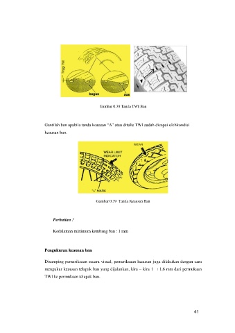 Gantilah ban apabila tanda keausan “∆” atau ditulis TWI sudah dicapai oleh kondisi