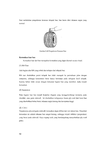 Kerusakan luar dari ban merupakan kerusakan yang dapat diamati secara visual.