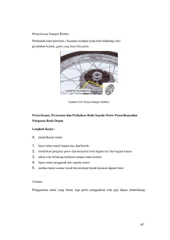 Pemeriksaan, Perawatan dan Perbaikan Roda Sepeda Motor Pemeriksaan dan