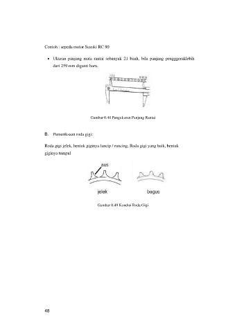 Ukuran panjang mata rantai sebanyak 21 buah, bila panjang pengggerak lebih