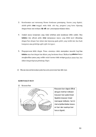 keausan ban pada tread.