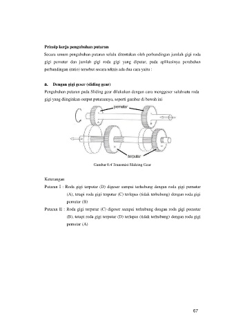 Pengubahan putaran pada Sliding gear dilakukan dengan cara menggeser salah satu roda