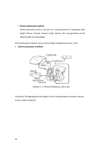 Sistem pelumasan motor 2 tak jenis ini, minyak pelumas di tempatkan pada