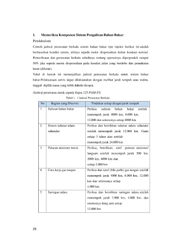 Contoh jadwal perawatan berkala sistem bahan bakar tipe injeksi berikut ini adalah