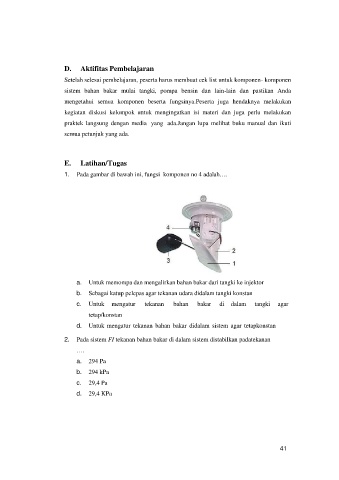 d. Untuk mengatur tekanan bahan bakar didalam sistem agar tetap konstan