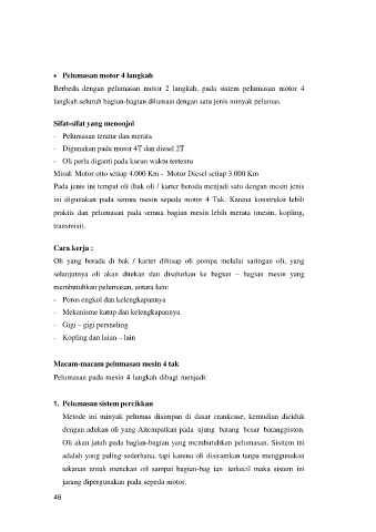Pelumasan pada mesin 4 langkah dibagi menjadi: