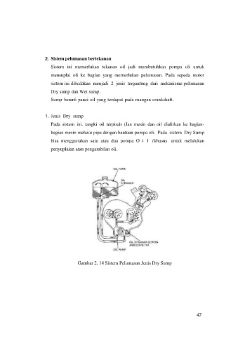 bagian mesin melaiui pipa dengan bantuan pompa oli. Pada sistem Dry Sump