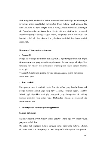 Oli dalam bak mengalir mclalui saringan untuk menyaring kotoran sebelum