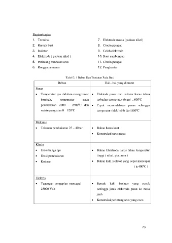 Temperatur gas didalam ruang bakar Elektode pusat dan isolator harus tahan