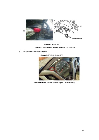 Gambar 2. 36 10 DLC (Sumber : Buku Manual Service Supra-X 125 PGMF-I) 5. MIL / Lampu indikator kerusakan Gambar 2. 37 Check Engine (Mil) (Sumber : Buku Manual Service Supra-X 125 PGMF-I) 77