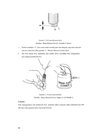 e. Periksa insulator “2”, jika warna tidak normal ganti busi dengan yang baru. (macam-