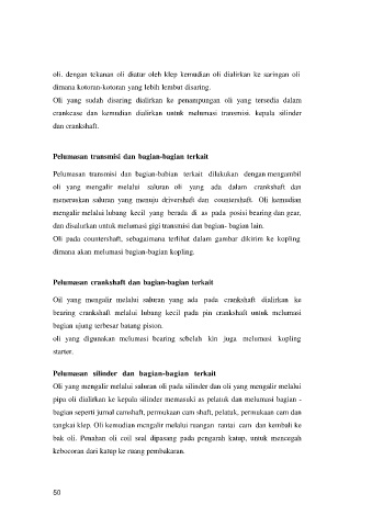 dan disalurkan untuk melumasi gigi transmisi dan bagian- bagian lain.