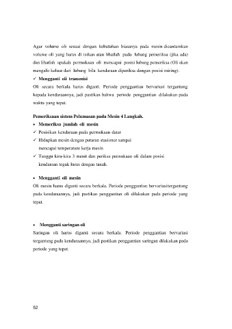 Agar volume oli sesuai dengan kebutuhan biasanya pada mesin dicantumkan