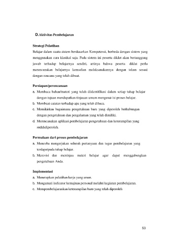 jawab terhadap belajarnya sendiri, artinya bahwa peserta diklat perlu